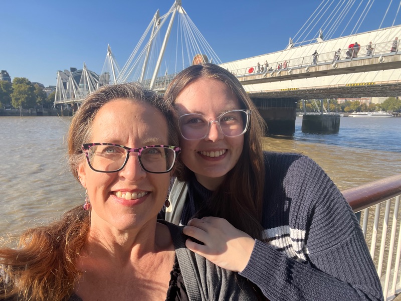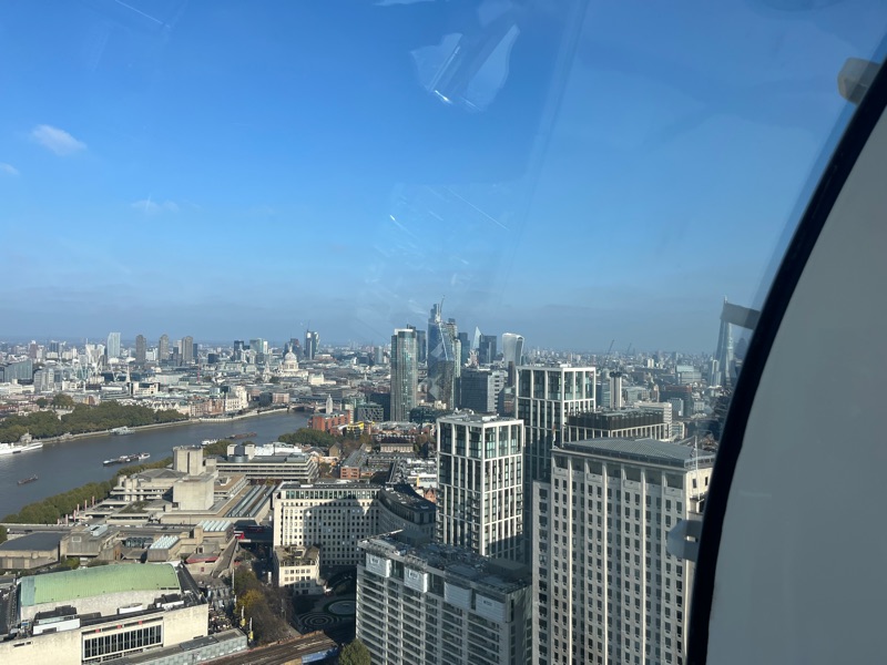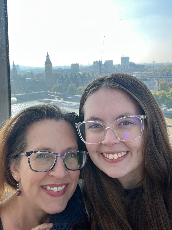 Also took the bus and the tube! Big day today: Did the Natural History Museum, had ice cream on the South bank, rode the London Eye, saw Jubilee Gardens, Waterloo, S Kensington, popped in for expensive, not-so-tasty apps at a posh place. We had a drink and aborted the mission! It was the right move because we found an excellent Italian place and had spaghetti for dinner. Great day!